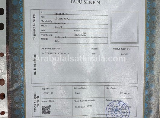 | İmar Durumu | Tarla |
